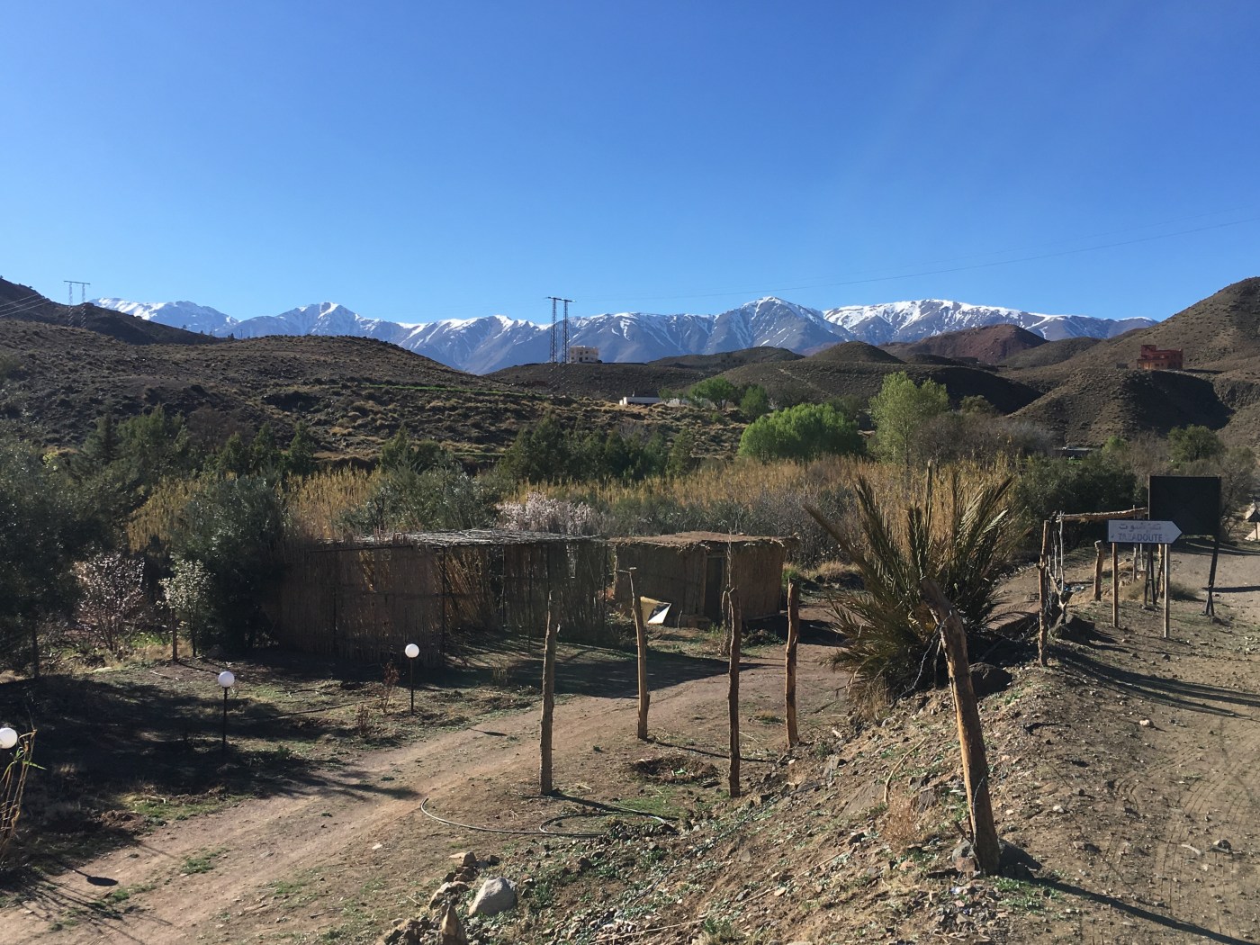 I was slightly missold the tour by Rashid as the bus barely stopped as it was focused on getting back quickly to Marrrakech. That said, it was a much better way to travel than by coach. The scenery was amazing the whole way through and early doors we saw the sight of snow-capped peaks on the horizon framed by the Skoura Oasis in front (above).
